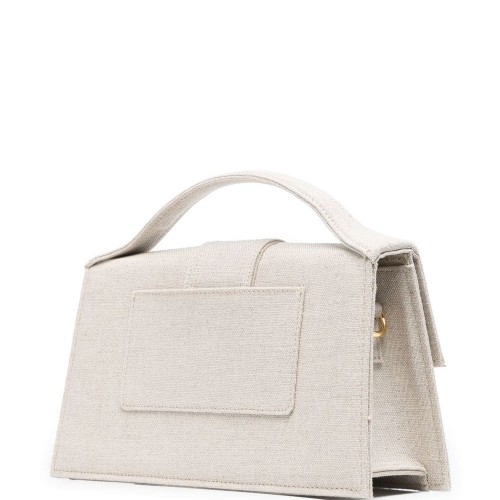 light greige linen-cotton blend gold-tone logo lettering single flat top handle front flap closure concealed magnetic fastening internal slip pocket rear patch pocket detachable shoulder strap This item contains at least 50% materials which are certified or widely recognised as having a lower environmental impact through production and/or manufacturing processes that reduce water consumption and the use of harmful chemicals, or re-use by-products of the production process. Learn more about what makes a product Conscious on our Conscious Criteria page.