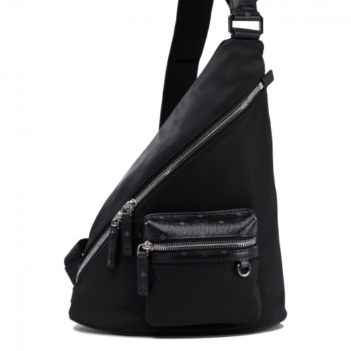 Adjustable shoulder strap, tonal stitching, magnetic button closure, contrast logo, single inner compartment, card pocketn26x13x10cm