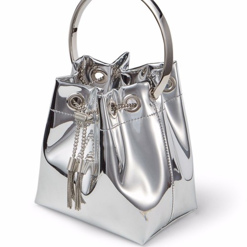 silver-tone metallic effect logo plaque tassel detail main compartment single rounded top handle