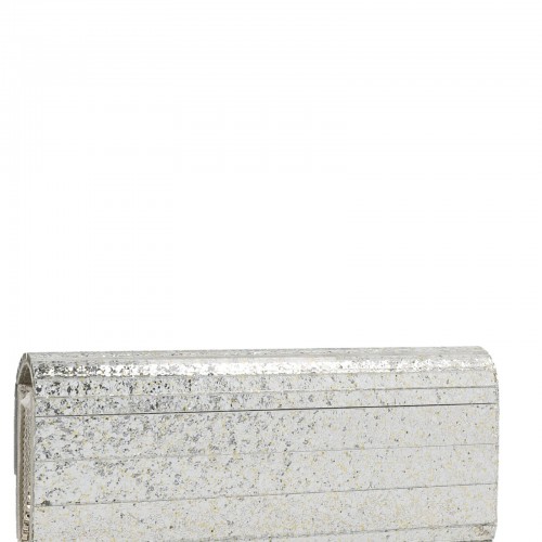 ‘Sweetie’ silver clutch bag in glitter acrylic with magnetic flap closure and removable shoulder strap.