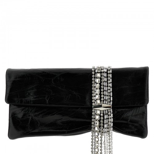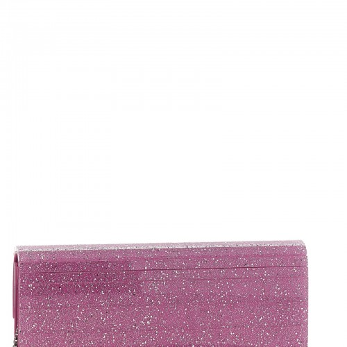 ‘Sweetie’ clutch bag in glitter acrylic fabric with magnetic flap closure, removable chain shoulder strap.