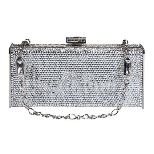 Judith Leiber – Silver Crystal Box Clutch w/ Mirror & Coin Purse