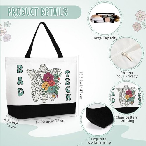 Kacctyen 3 Pcs Radiologic Technology Gifts Fine Canvas Tote Bag Cute Makeup Cosmetic Bag Radiologic Technologist Appreciation Keychains Rad Tech Gifts for Women Female Birthday