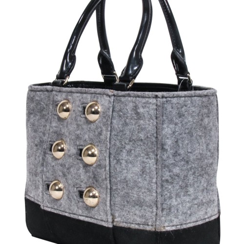 This Kate Spade handbag is the ultimate winter favorite. Made with stylish black and grey felt, it features luxurious gold double breasted buttons for a touch of elegance. Perfect for adding a chic touch to any outfit.