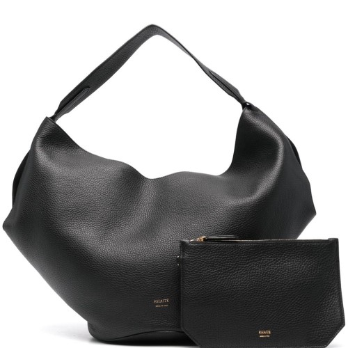 black calf leather pebbled texture single flat top handle removable pouch logo stamp to the front main compartment no fastening This piece comes complete with a protective dust bag.