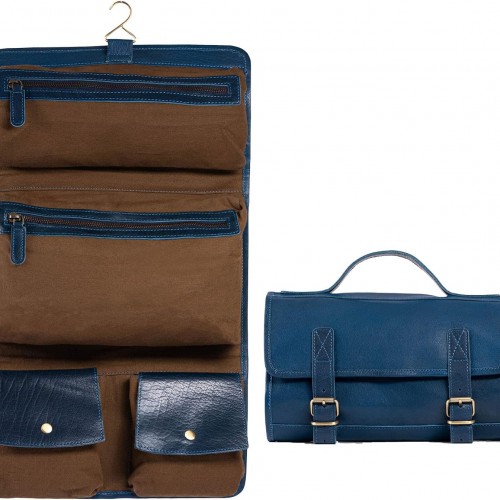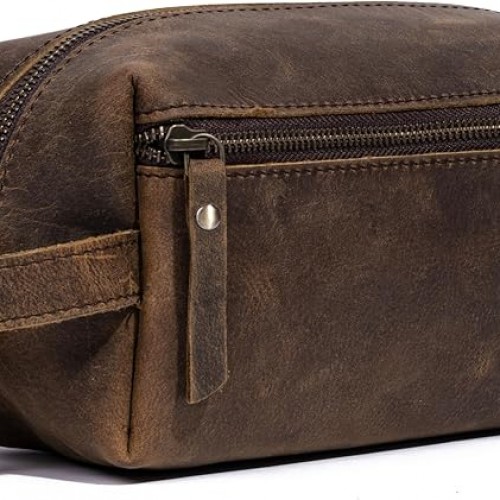 KomalC Premium Unisex Vintage Vanity Dopp Kit – Travel Toiletry Bag Shaving for Men and Women (Brown)