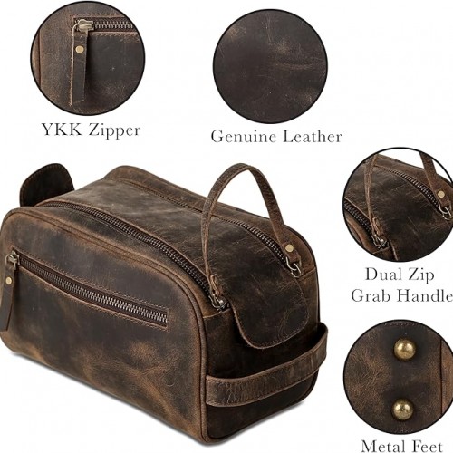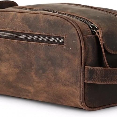 - Trendy Design with Premium Accessories: Made from washed leather, a current trend in leather fashion, this toiletry bag offers a chic and convenient way to organize your toiletries, makeup, shaving kits, and more. With a water-resistant lining and durable YKK metal zippers, it’s built to withstand daily use.