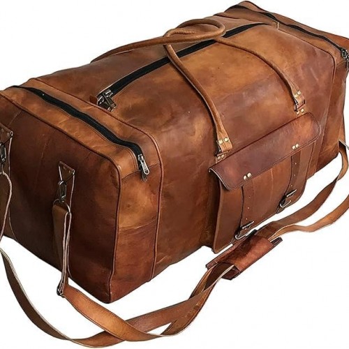 - HANDCRAFTED DUFFLE LEATHER BAG: Crafted from the finest full-grain leather, The bags exude luxury and durability. Each bag is meticulously handmade and lined with sturdy canvas, Ensuring longevity and resilience against everyday wear and tear. What sets the products apart is the dedication of skilled craftsmen who pour their expertise and passion into every stitch. With meticulous attention to detail, These handcrafted vintage-style leather bags are more than just accessories it adds depth to a personality.