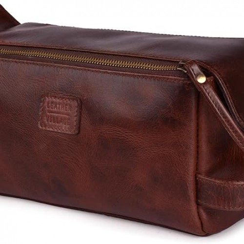 LEATHER VILLAGE Premium Leather Travel Toiletry Bag – Water-Resistant Dopp Kit for Toiletries, Large Shaving Bag & Bathroom Organizer – Gift for Men & Women – Royal Blue