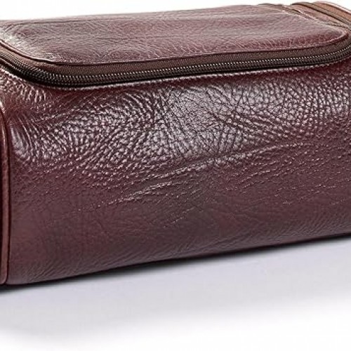 Leatherology Navy Blue Large Travel Organizer – Full-Grain Leather Toiletry Bag with Zipped Mesh Pocket, Elastic Loops & Double Metal Zipper – Travel Storage for Cables, Toiletries & Essentials