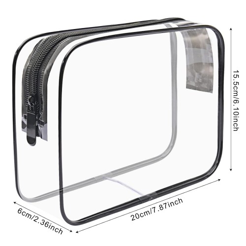 Lermende 2pcs Clear Toiletry Bag TSA Approved Travel Bag,Carry On for Travel,Airport Airline Accessories Compliant Bag,Quart Sized Makeup Cosmetic bag Women Men (Transparent Black, 2 Pack)