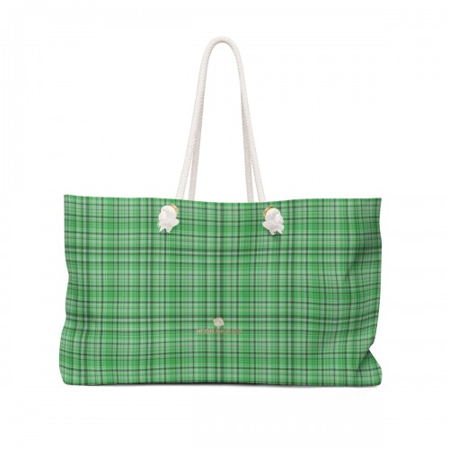 Light Blue Plaid Tote Bag, Light Blue Plaid Tartan Print Oversized Designer 24″x13″ Large Weekender Bag – Made in USA