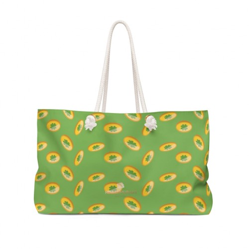 Light Green Gold Coins Tote, Best St. Patrick’s Day Irish 24″x13″Weekender Bag- Made in USA 24×13