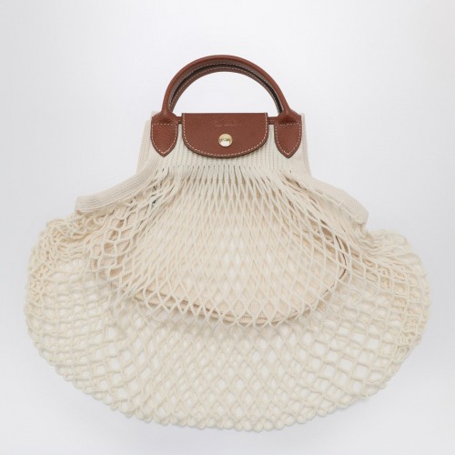 Large shoulder bag by Longchamp in graphite-coloured recycled fabric, with two tone on tone top handles and leather details. Foldable model.