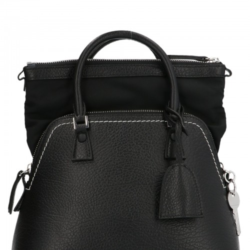 5AC Mini’ leather and canvas handbag with zip closure, double top handle, with adjustable and removable shoulder strap and a logo detail.etail.