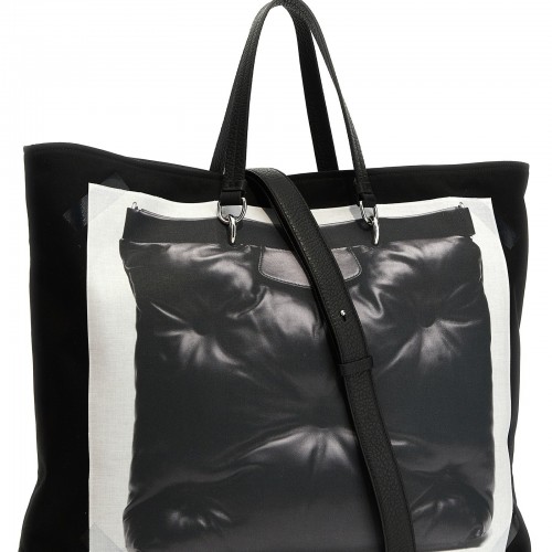 ‘Trompe l’oeil 5AC classique medium’ leather handbag with contrast print, handles, adjustable and removable shoulder strap and button closure.