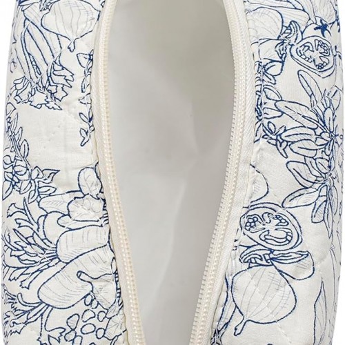 Makeup Bag Travel Cosmetic Bag for Women Girls, Zipper Make Up Pouch, Floral Flowers Toiletry Organizer Makeup, Portable Storage Bag, Cosmetic Travel Cloth Bag (Navy Blue Flower)