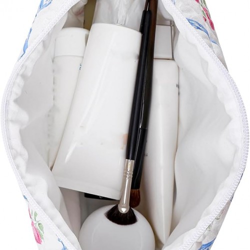 Makeup Bag Travel Cosmetic Bag for Women Girls, Zipper Make Up Pouch, Floral Flowers Toiletry Organizer Makeup, Portable Storage Cosmetic Travel Cloth Bag (L/Blue Bowknot)