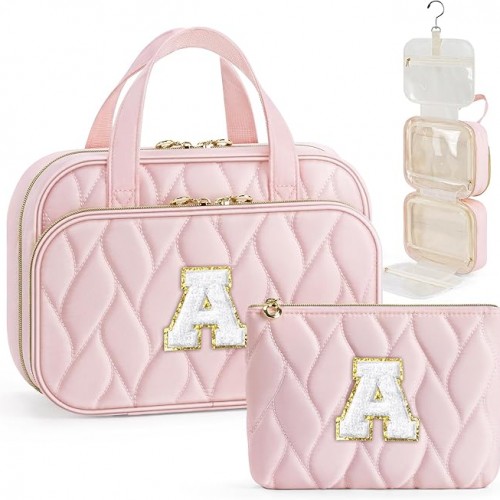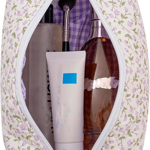 Makeup Bag Travel Cosmetic Bag for Women Girls, Zipper Make Up Pouch, Floral Flowers Toiletry Organizer Makeup, Portable Storage Cosmetic Travel Cloth Bag (Purple Floral)