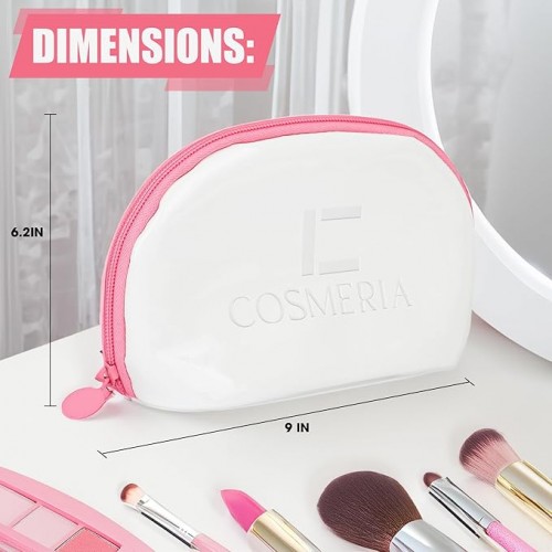 Makeup Bag & Travel Cosmetic Bag – Toiletry Bag for Women Fits Carry-On and Suitcase – Make Up Faux Patent Leather Pouch with Durable Hot Pink Zipper, Medium