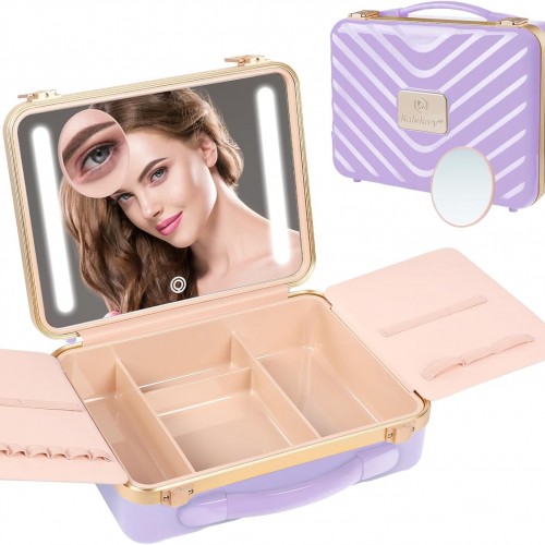 - PORTABLE BEAUTY STATION: Enjoy a hands-free makeup experience with the detachable LED mirror, secure backing, and foldable stand. Whether you’re getting ready at a hotel, in the car, or on the train, this makeup case with lighted mirror ensures you always have a stable, well-lit surface for precise application no matter where you are.