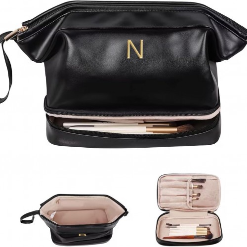 Makeup Bag with Led Mirror,Travel Makeup Organizer with 3 Color Setting & 10X Magnifying Mirror, Portable Storage and Adjustable Dividers Travel Makeup Bag-dark blue