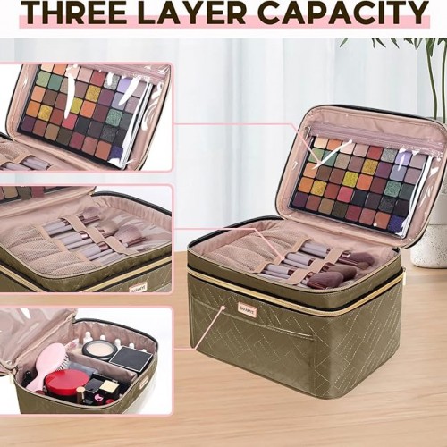 - Main Compartment with Divider: The main compartment comes with a divider, ensuring your cosmetics stay organized and are easy to access. This makeup organizer bag is every makeup lover’s dream