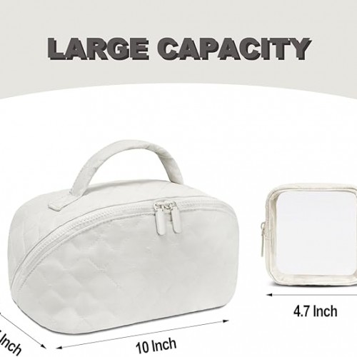 - 180° Lay-Flat Design: This spacious women’s makeup bag(10×5.5×5.5 inch) features a 180° lay-flat opening design with multiple independent compartments. Its well-organized storage space allows you to store different types of items separately,say goodbye to cluttered piles—access your items quickly and conveniently while effortlessly maintaining tidiness