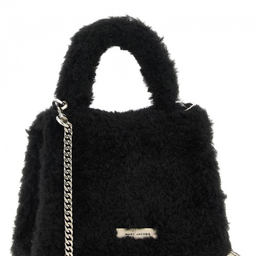 ‘Teddy St. Marc’ teddy fabric handbag with leather details, fixed handle, magnetic flap closure with logo and front metal chain, metal plaque with engraved logo on the back, removable chain shoulder strap.