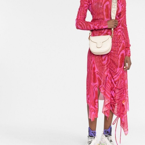 cloud white calf leather gold-tone hardware logo plaque chain-link shoulder strap logo-embellished shoulder strap foldover top main compartment internal zip-fastening pocket
