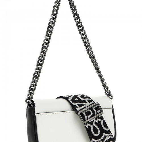 The J Marc Soft leather shoulder bag with magnetic closure, a removable chain handle, and an adjustable and removable shoulder strap.