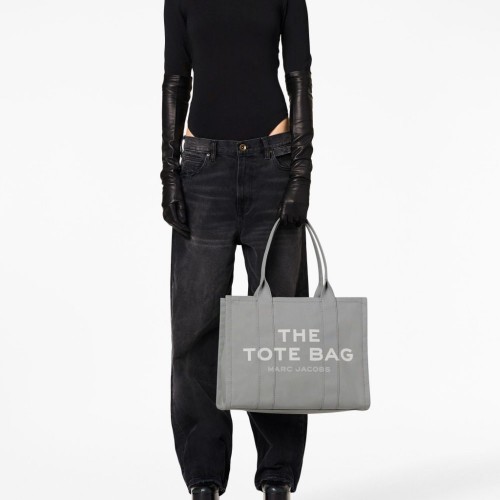 The Large Tote bag from Marc Jacobs featuring grey, cotton, logo print to the front, main compartment and two top handles.