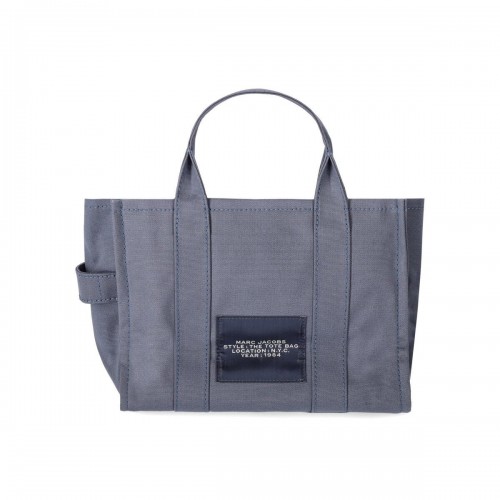 The Medium Tote bag by Marc Jacobs made of denim blue cotton canvas with contrasting maxi logo on the front. Internal slip pockets, zip closure and adjustable and removable shoulder strap. Measures 34x15x27 cm.