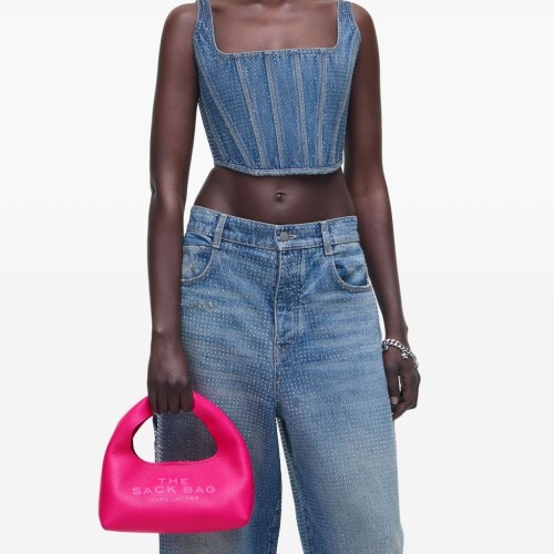 hot pink leather logo print to the front logo patch to the rear single top handle magnetic fastening internal zip-fastening pocket