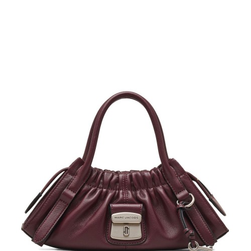 black leather top handle zip fastening key charm gathered detailing