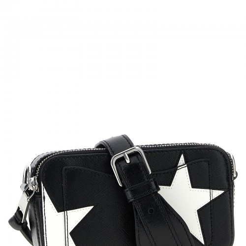 Saffiano leather ‘The Star Patchwork Snapshot’ crossbody bag with patchwork contrasting stars, frotale metal logo, zip closure, adjustable and removable shoulder strap.