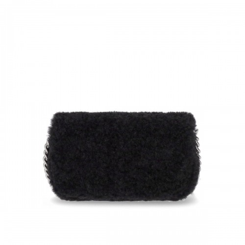 The Teddy J Marc Mini bag by Marc Jacobs made of black teddy fabric, embellished with silver metal details. Iconic logo on the front completing the magnetic closure. Interior equipped with two compartments, one of which is zipped, plus a special section for cards. The bag can be used in three ways: as a shoulder bag using the chain shoulder strap, as a crossbody bag using the leather shoulder strap and as a clutch, carrying it by hand. Measurements 20x11x8 cm.