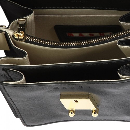black black faux leather tonal stitching logo print to the front top zip fastening adjustable shoulder strap main compartment unlined