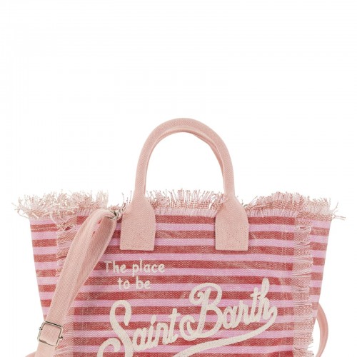 Colette bag in cotton with fringes, a must-have for the summer season, practical thanks to the handles for carrying it by hand and the inside pockets for storing smaller items safely. Finished with a beautiful denim patchwork pattern. – One zipped inside pocket – Central zipped flap closure – Saint Barth logo DESIGNER ID: COL0001 01050F