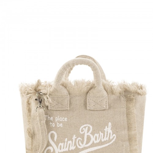 Introducing the Mini Vanity Linen bag, an eye-catching accessory that embodies the purity of natural elegance. Made entirely of 100% linen, this bag radiates timeless charm and eco-friendly allure. The Mini Vanity Linen bag features a soft texture and meticulous detailing, highlighting the inherent beauty of the linen fabric. Its design features a seamless integration of neutral tones, emanating a relaxed yet sophisticated aesthetic. The bag’s spacious interior ensures effortless storage of your daily essentials. The lightweight and durable nature of the linen material combines functionality and style, making it an ideal choice for various occasions. Embrace the understated beauty of natural linen with the Mini Vanity Linen bag, where the simplicity of linen meets contemporary design. Enhance your outfit with this eco-conscious accessory that perfectly combines fashion and sustainability. – Mini Vanity Linen Bag – Solid colour – Exclusive Saint Barth logo print – Inside zip pocket – Removable shoulder strap DESIGNER ID: VAMI008 00236F