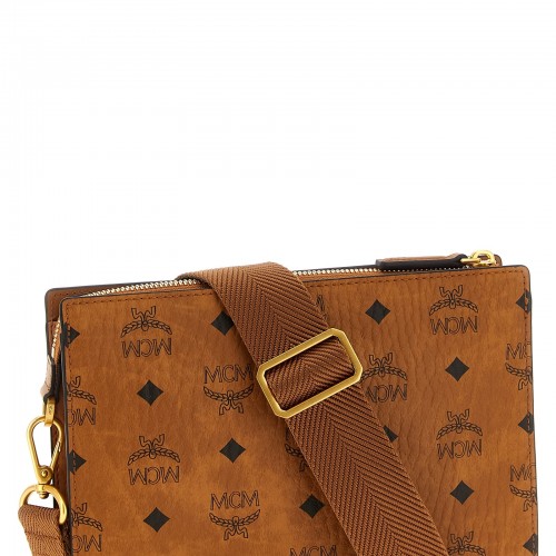 Small ‘Aren’ crossbody bag in Visetos monogram canvas, top zip closure, front pocket with snap button, adjustable and removable shoulder strap.