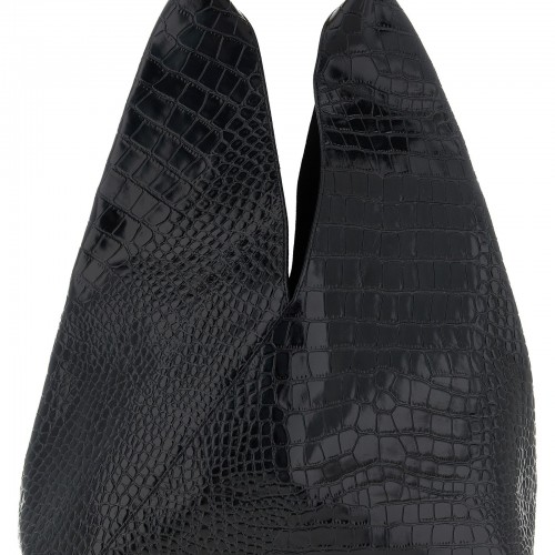 Suede shoulder bag with leather details, leather and metal magnetic T-bar buckle closure, adjustable shoulder strap.