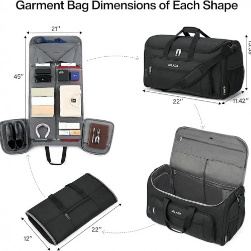 MILADA Convertible 2-in-1 Garment Duffel Weekender Bag Carry On Garment Bags for Travel Hanging Clothes Suit Bag Foldable Personal Item Business Overnight Bag with Shoe Compartment, Black