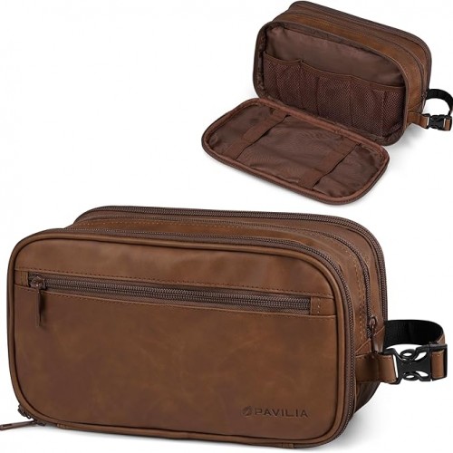 MIRASON Travel Toiletry Bag, Hanging Toiletry Bag for Men, Leather Travel Shower Bag for Toiletries Dopp Kit Bathroom Bag with Metal Hook, Gift for Men (Brown)
