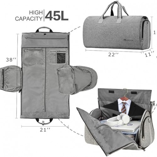 - TWO BAG IN ONE MODOKER BAG; With the fancy design of combining the feature of Garment Bag and Duffel Bag, Modoker Garment Duffel Bag is not only a Overnight Travel Weekender Bag, but also a great Duffel Hanging Clothes Bag. It is a solid choice for who heading for a business trips or weekend getaway.