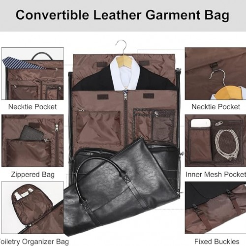 Modoker Convertible Leather Garment Bag, Carry on Garment Bags for Travel, Garment Duffel Bag, Gifts for Men Women Business Waterproof Suitcase Suit Travel Bags, Black
