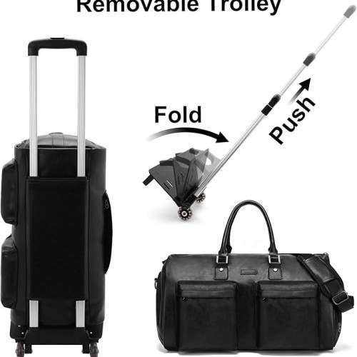 Modoker Rolling Garment Bag for Travel Wheeled Duffel Bag Luggage Suit Travel Bags for Men and Women,3 in 1 Carry on Convertible Garment Bag with Wheels,Black
