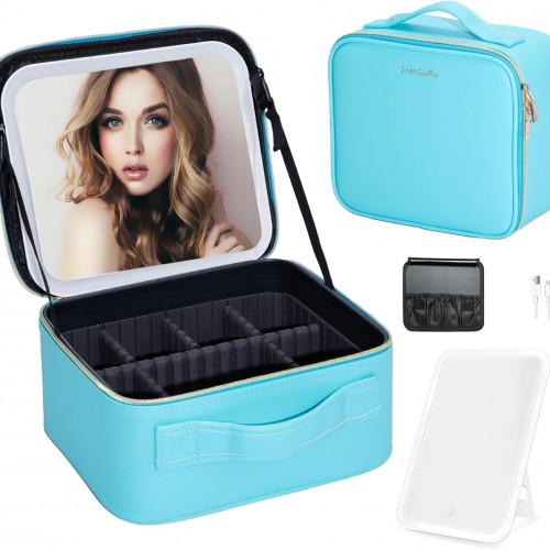 MOMIRA Travel Makeup Bag Cosmetic Bag with Lighted Mirror, Adjustable Brightness in 3 Color Scenarios/Detachable makeup mirror, All-round Upgrade, Waterproof, Gift for Women -Orange