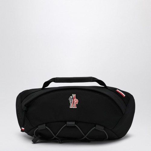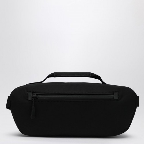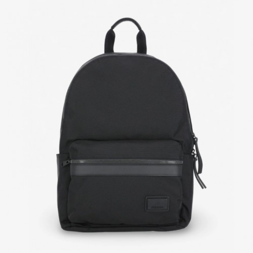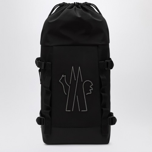 Water-repellent technical fabric backpack, front leather logo embroidery, fixed handle, top drawstring closure, pockets, adjustable shoulder straps, padded backrest.