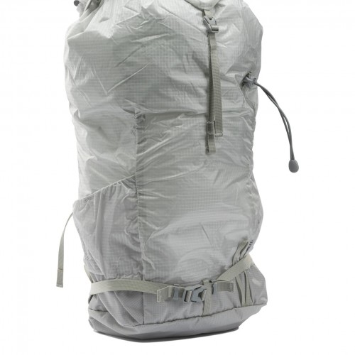 Montbell “Versalite” backpack, 30-denier ballistic ripstop Nylon construction designed to optimize the ratio of strength to light weight. Compact structure and essential silhouette, devoid of superfluous elements, with folding and pocketable body. Backpack architecture promotes weight minimization while maintaining key functional elements for light hiking and backpacking.
